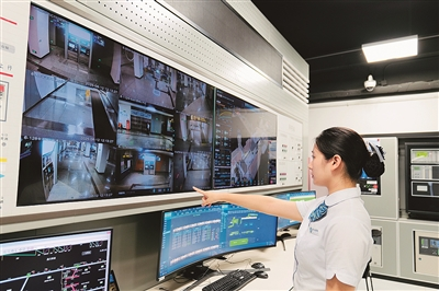 在青岛地铁6号线辛屯站,工作人员正在查看智慧车站管理系统