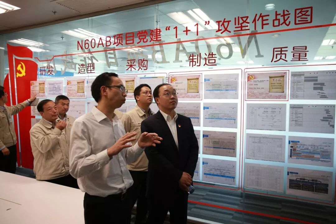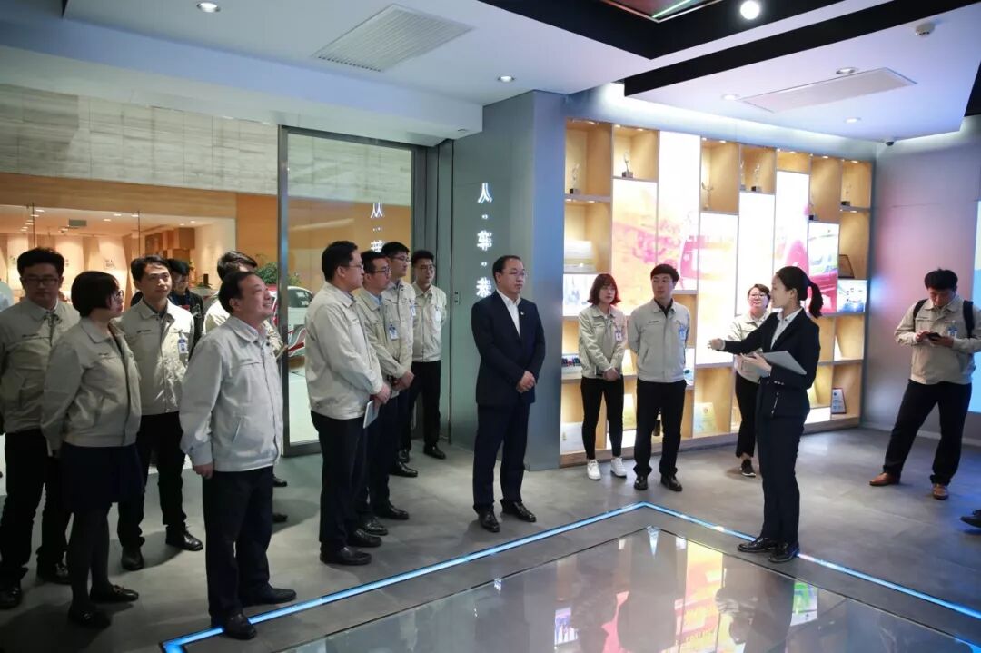 李双双一行首先在蓝谷一层参观了展厅和展车,了解北汽新能源整体情况和产品情况,随后参观了工程研究院N60AB项目临时党支部党建活动室,了解北汽新能源基层党支部在发挥引领作用、紧贴企业中心工作、开展党建创新、助推企业发展等方面的成果。
