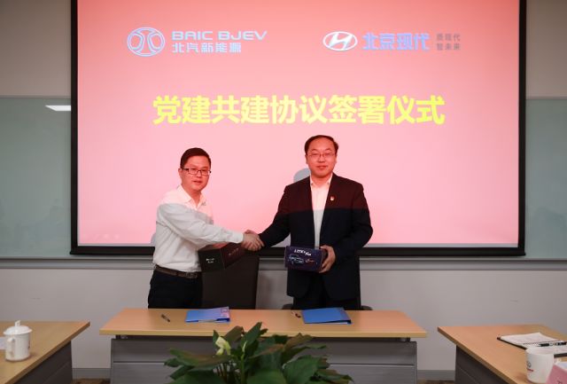 双方共同启动了党建共建仪式,连庆锋、李双双分别代表北汽新能源党委和北京现代党委签署了《党建共建协议书》。按照约定,双方将共同搭建“红动蓝谷”项目品牌,加强双方企业交流共建,将组织建设互促、党员干部互动、党建载体互用、优秀模式互学、强化督导推进等措施长效化、机制化,保障共建有效落地。